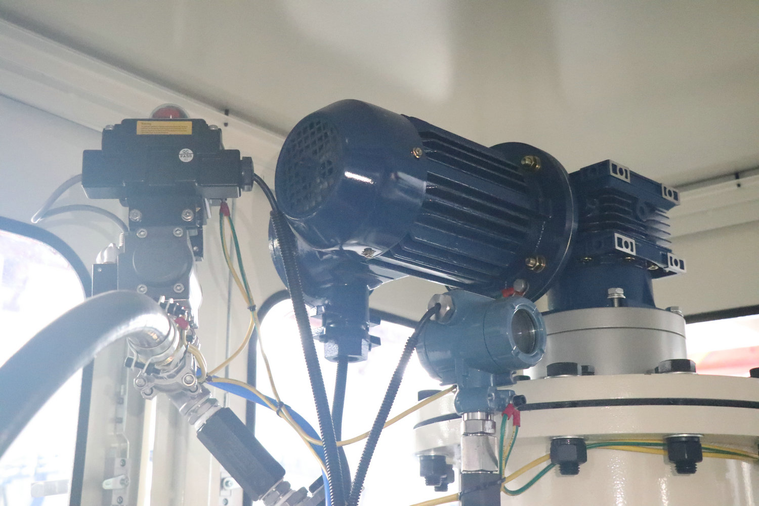 領(lǐng)新環(huán)戊烷高壓發(fā)泡機(jī)采用獨(dú)立防靜電性、防爆安全圍房,氣體濃度監(jiān)測預(yù)警系統(tǒng),自動(dòng)雙速抽風(fēng)系統(tǒng),防爆電機(jī),防靜電接地裝置,故障自檢報(bào)警等,為客戶量身訂做安全、完善的發(fā)泡系統(tǒng)。